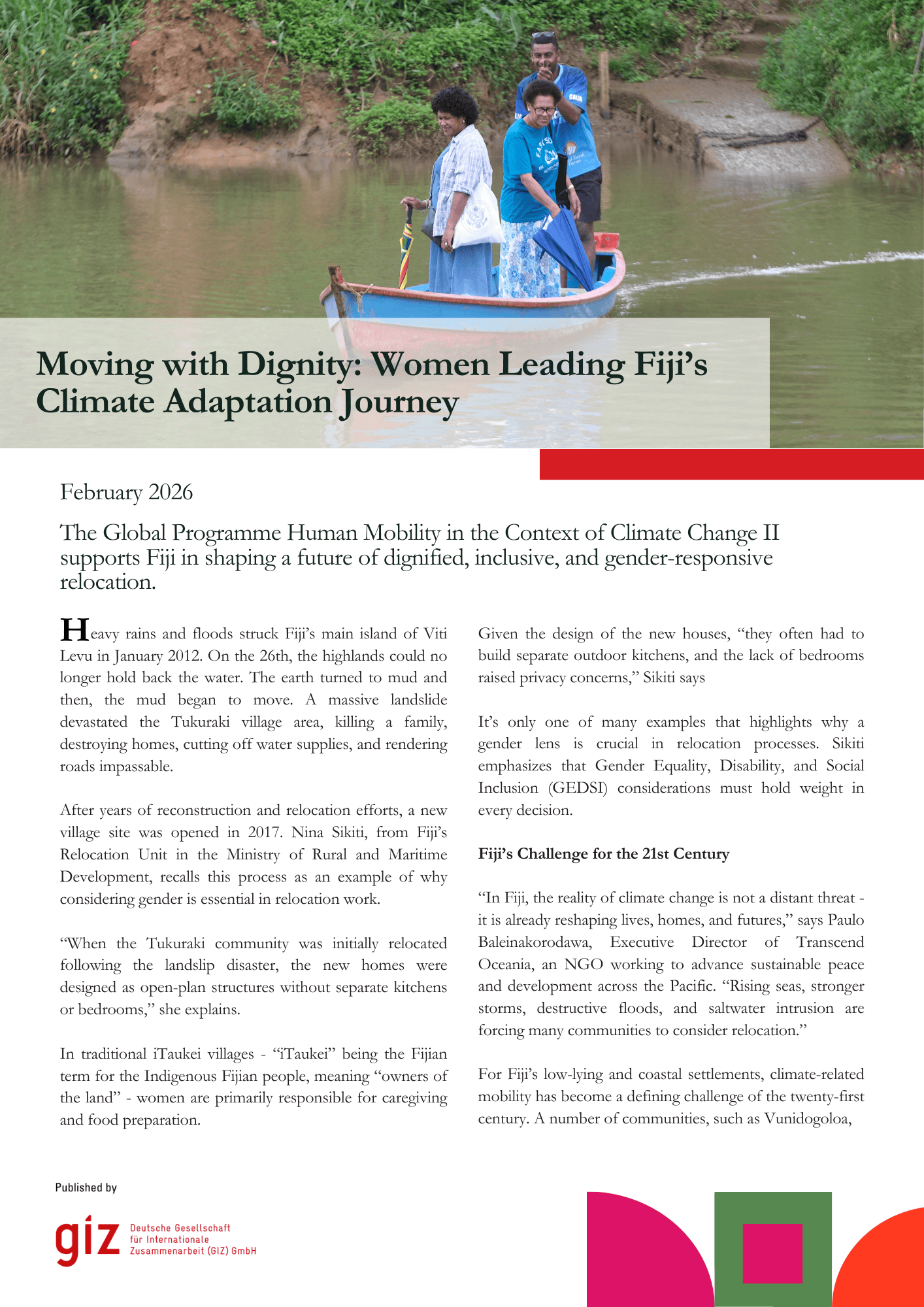 Fiji shows that mobility in the context of climate change is not gender-neutral, and that relocation processes must consider gendered roles, responsibilities, and access to resources....