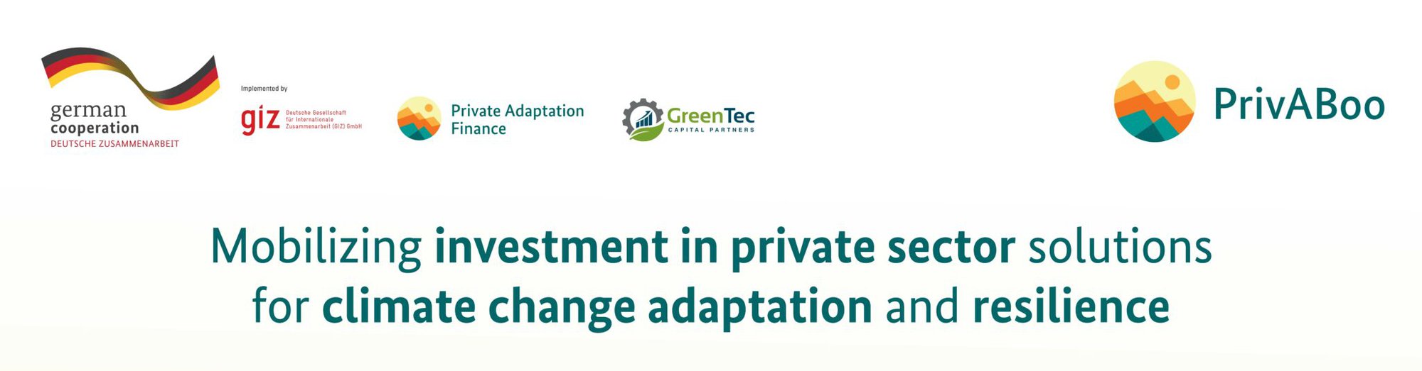 The Deutsche Gesellschaft für Internationale Zusammenarbeit (GIZ) GmbH, on behalf of the Federal Ministry for Economic Cooperation and Development, is implementing a project on Private Adaptation Finance until the end of 2025, which aims to mobilize investment in private sector solutions for climate change adaptation & resilience.