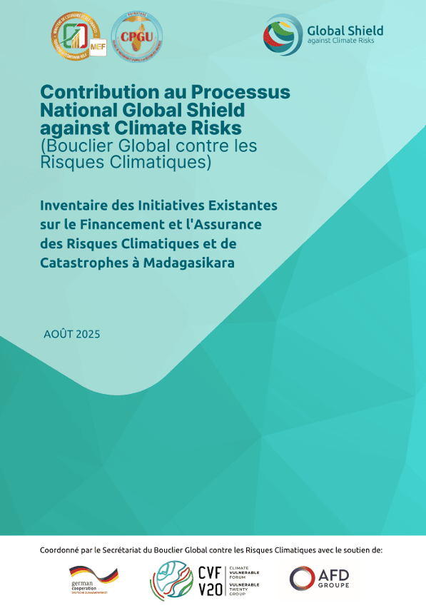 Le présent rapport d’analyse des besoins en matière de gestion et de financement des risques climatiques à Madagasikara s’inscrit dans la continuité des travaux menés sous l’égide de la Cellule de Prévention et d’appui à la Gestion des Urgences (CPGU) et du Ministère de l’Economie et des Finances (MEF), avec l’appui du processus Global Shield. Il s’appuie sur les consultations bilatérales, les échanges de l’atelier national du Global Shield à Madagasikara des 3 et 4 avril 2025 impliquant tous les secteurs et parties prenantes concernés dans le pays et capitalise sur les initiatives existantes à travers la contribution essentielle des partenaires techniques, notamment le Global Risk Modelling Alliance (GRMA), Oxford Policy Management (OPM), Access to Insurance Initiative (A2ii), le V20 Sustainable Insurance Facility (SIF), la Banque Mondiale (BM) et le Programme Alimentaire Mondial (PAM) pour offrir une vision consolidée des mécanismes de financement des risques climatiques. L’objectif est de recenser, structurer et prioriser les besoins exprimés par les parties prenantes afin d’alimenter la préparation d’une demande de soutien auprès du Global Shield. Certains besoins, bien que ne relevant pas directement du périmètre d’intervention du Global Shield, sont également présentés à titre informatif pour nourrir la réflexion sur l’évolution des instruments nationaux de financement des risques climatiques. Le rapport est organisé en deux parties :
